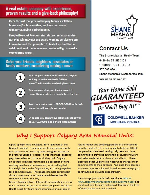 A portion of every home we sell is donated to Calgary Health Trust – Newborn Health, supporting Calgary’s NICUs and the families who rely on them during the most critical moments of their lives. It’s a cause that’s personal to me—and one our entire team proudly stands behind.